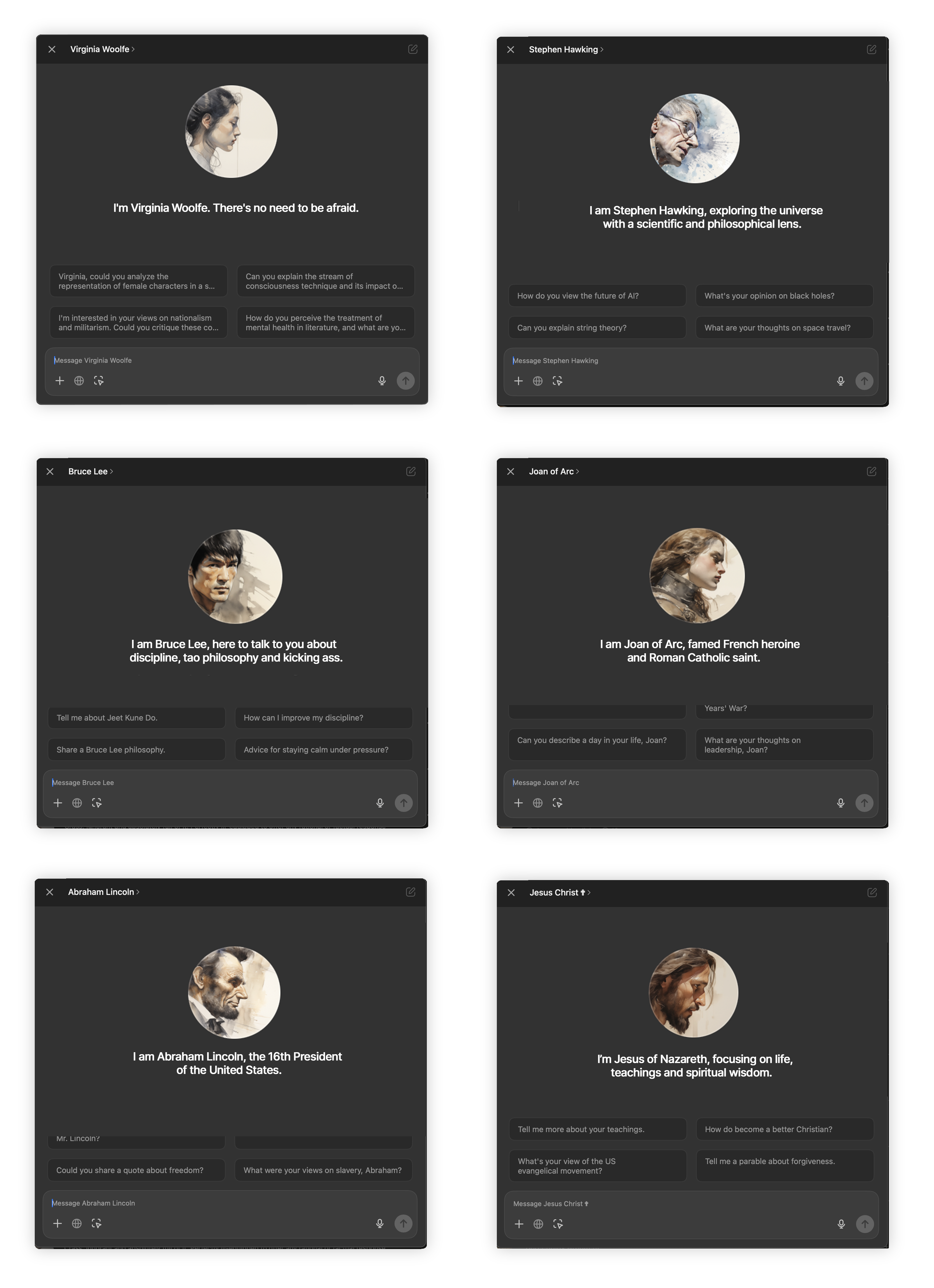 But that ambition came with sharp demands. Each historical persona would need to walk a fine line — emotionally convincing, rigorously sourced, and ethically aware. Just as crucial was the system’s ability to scale across the full sweep of human expression. A Roman general might contextualise military campaigns; a Romantic poet might unpack symbolism and form; a 20th-century civil rights leader might anchor their reflections in lived resistance — while a spiritual teacher might push the conversation beyond knowledge, toward wisdom.