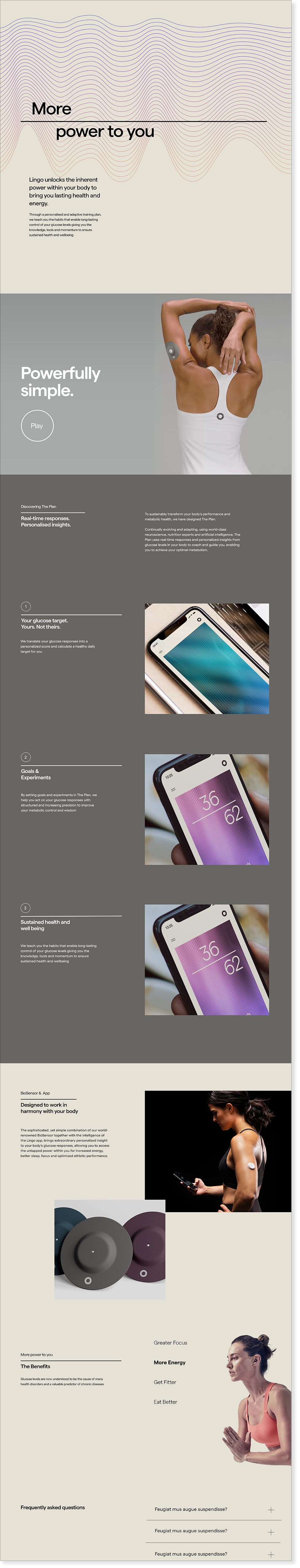 Understanding that our audience includes both tech enthusiasts and health-conscious individuals, the content was crafted to bridge these interests with precision and clarity. Every piece of the website used engaging and informative language, ensuring that even the most technical aspects of Lingo’s functionality were accessible. By employing an active voice and dynamic language, we drew readers in while backing each statement with robust scientific research to maintain credibility and trust. This was neatly summarised in our strategic strap-line: More power to you.
